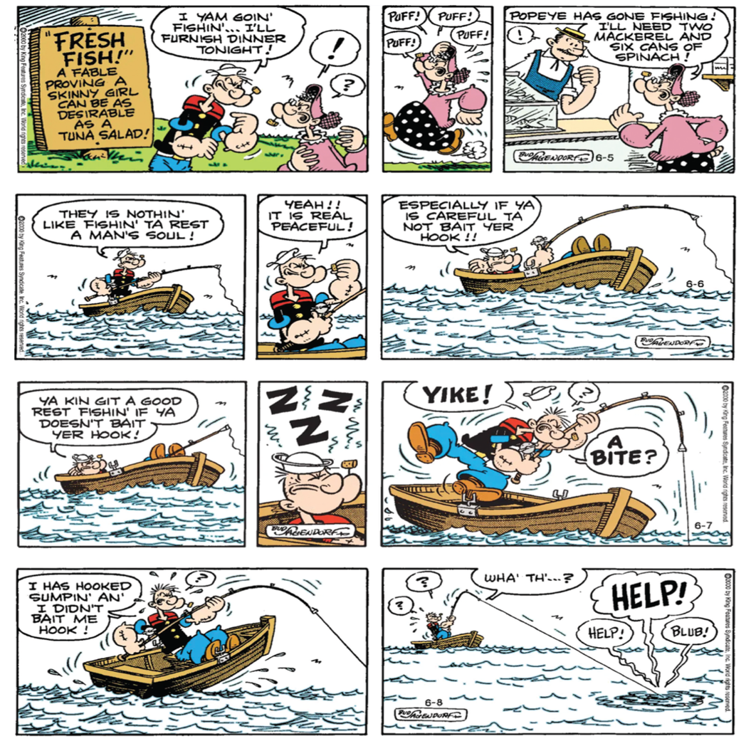 In these timeless stories, Popeye the Sailor faces off against his eternal nemesis Bluto—a loud, burly troublemaker who relies on brute force and trickery to get his way, especially when it comes to winning over Olive Oyl. Whether it’s strange new rivals, quirky professors, or mysterious mermaids, Popeye finds himself in situations where strength alone isn’t enough—until a trusty can of spinach turns the tide.