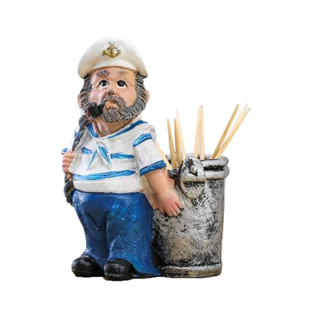 It is a delightful and practical piece of table decor that embodies the spirit of the sea. Made from high-quality polyresin, it's a charming addition to any nautical-themed collection. It also makes for a unique and thoughtful gift for those who appreciate the maritime world. Whether at home or in a restaurant, let this cute sailor and his toothpick-holding barrel enhance your dining experience with a touch of nautical flair.