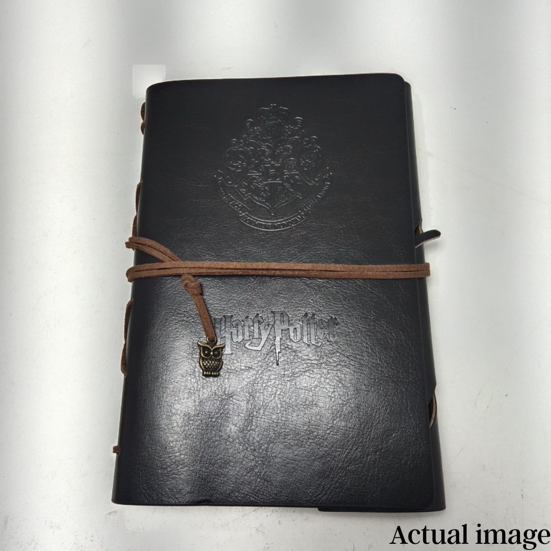 Bring the Wizarding World of Harry Potter into your daily life with this Vintage Hogwarts Crest Journal, featuring an embossed Hogwarts crest on the cover and a Deathly Hallows charm attached to its strap closure. With a handcrafted, leatherette (PU leather) finish and a string-bound spine, this notebook offers a truly vintage and magical aesthetic.