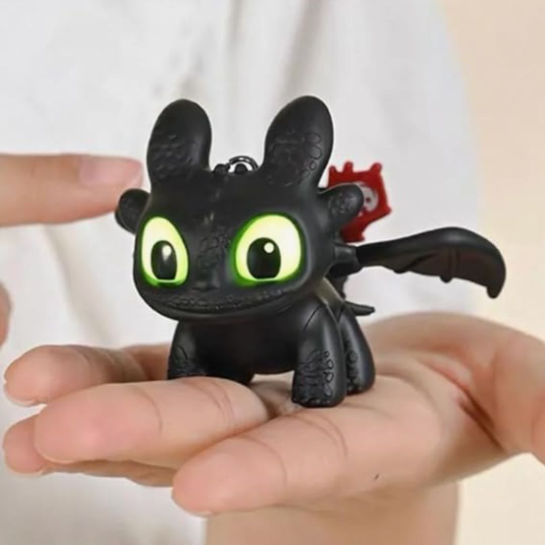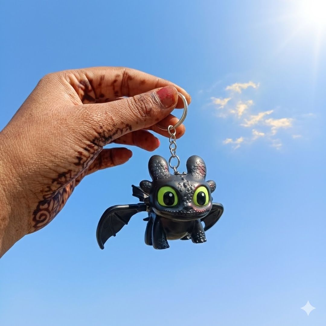 Carry a little magic wherever you go with this adorable Tiny Toothless Dragon Keychain. Featuring oversized neon green eyes, detailed textured wings, and a matte black finish, this mini fantasy creature is perfect for bags, keys, backpacks, or car décor.
