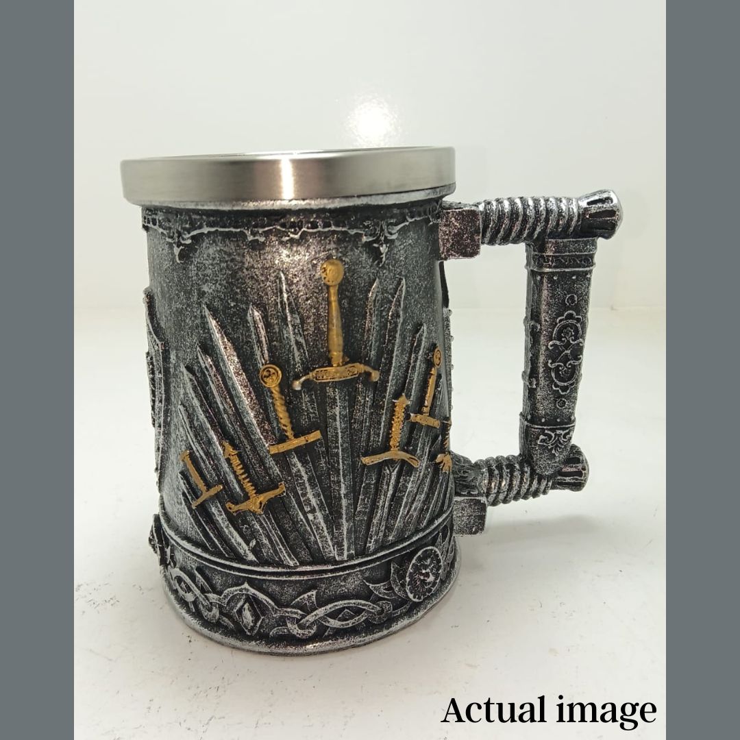 Bring medieval legend to your table with the Iron Throne Sword Tankard Mug — a striking tankard inspired by fantasy warfare and epic kingdoms. Featuring a sculpted body embedded with swords and a rugged battle-worn finish, this mug looks straight out of a royal armory.