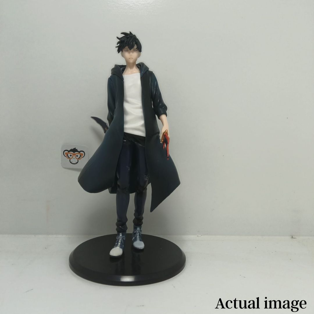 Standing approximately 21 cm tall, this figure is available in two powerful variants—one showcasing Jin-Woo in a calm, composed stance with his signature long coat, and the other capturing him mid-battle wielding his iconic dual daggers. From the flowing coat sculpt to the sharp weapon detailing, every element screams high-level hunter energy.